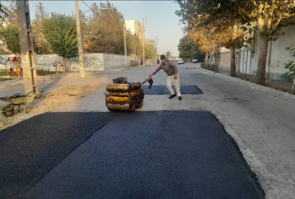 اجرای روزانه ۵ تن آسفالت برای لکهگیری آسفالت در معابر منطقه