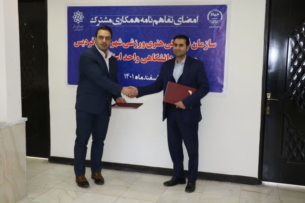 تفاهم نامه همکاری جهاددانشگاهی استان البرز و سازمان فرهنگی، ورزشی و اجتماعی شهردای فردیس