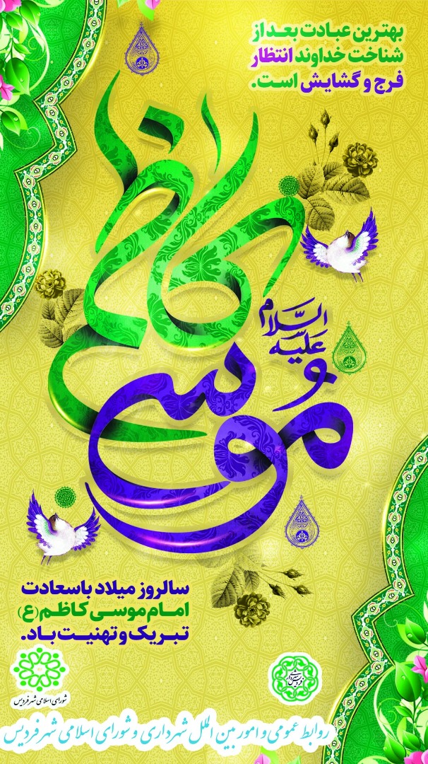 پیام تبریک سرپرست شهرداری فردیس به مناسبت میلاد با سعادت امام موسی کاظم (ع)